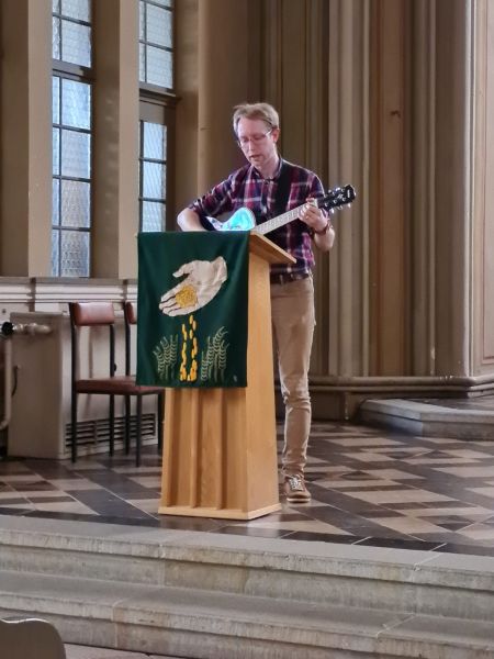 Ein passendes Lied dazu wurde von unserem Pfr. Albert gesungen mit dem Text: Wenn wir Gott in der Höhe ehren, kehrt bei uns Frieden ein.
