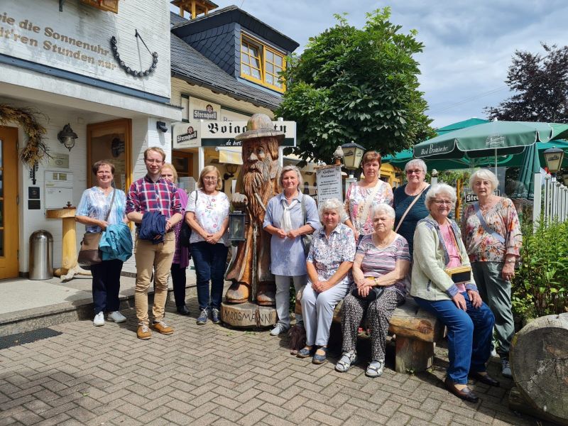 Bei gutem Wetter mit angenehmen Temperaturen sind wir 11 Frauen und Pfr. Albert sowie einem Fahrer gestartet. Ziel war Markneukirchen. Wir hatten eine sehr schöne Anfahrt über Schöneck, Gopplasgrün, Erlbach, Wernitzgrün zur Gaststätte Heiterer Blick in Markneukirchen. Dort gab es Kaffee und sehr gute Leckereien in einem schönen vogtländischen Ambiente.