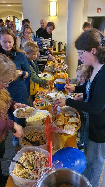 Bei Kaffee+Waffeln, verschiedensten Stationen, Gesang, Gebet, Spiel, Verkündigung und Mittagessen erlebten wir eine gesegnete Zeit.